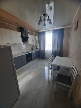 Сдам большую кухню - гостиную и спальню в ЖМ " Радужный". Общая площадь 68 м. 10/16 эт. Две лоджии, гардеробная. Свой теплосчетик. На длительный срок