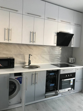 Две кровати, 2 шкафа купе, шкафы, душевая, духовка, стиральная машина с сушкой. На длительный срок ще