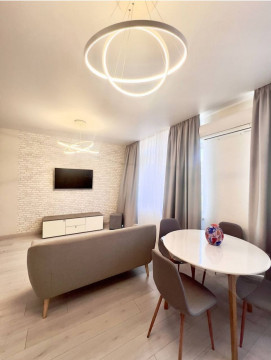 Сдам красивую кухню-студию и спальню в ЖК " Лимнос"/ Педагогическая. Общая 50 м. 15/24 эт. Хороший ремонт. Вся необходимая мебель и бытовая техника. Балкон. В доме есть подземный паркинг, генератор. На длительный срок ще